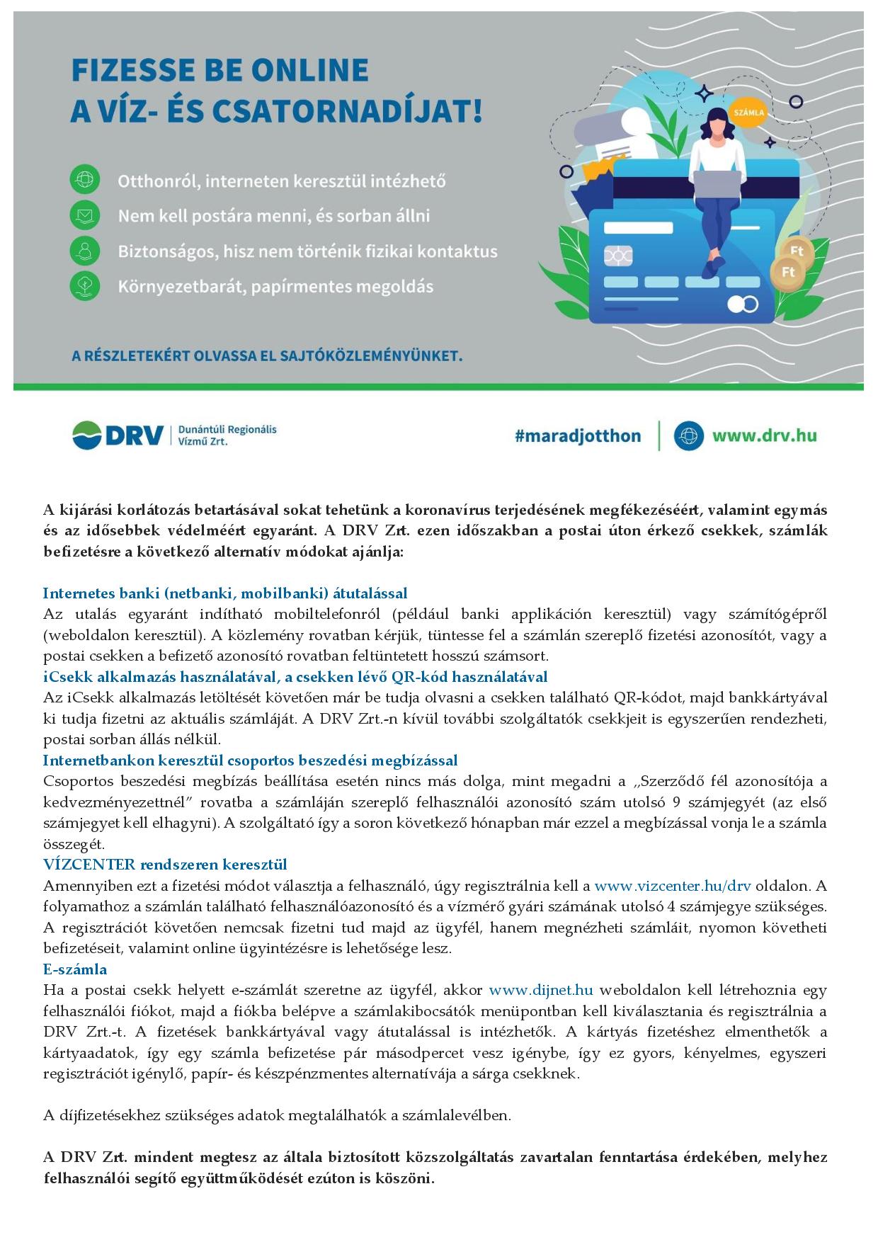 Fizesse be online a víz-és csatornadíjat!