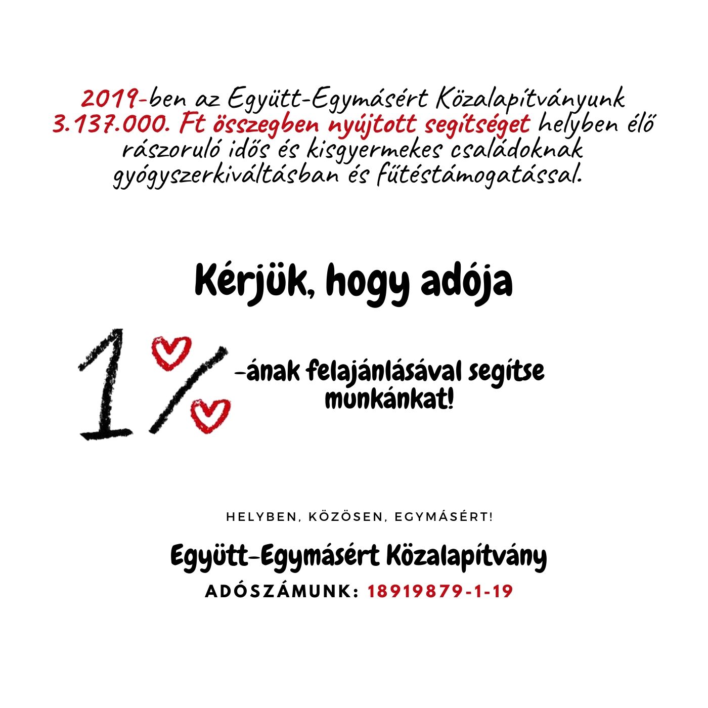 Kérjük, hogy adója 1%-nak felajánlásával segítse az Együtt-Egymásért Közalapítvány munkáját.