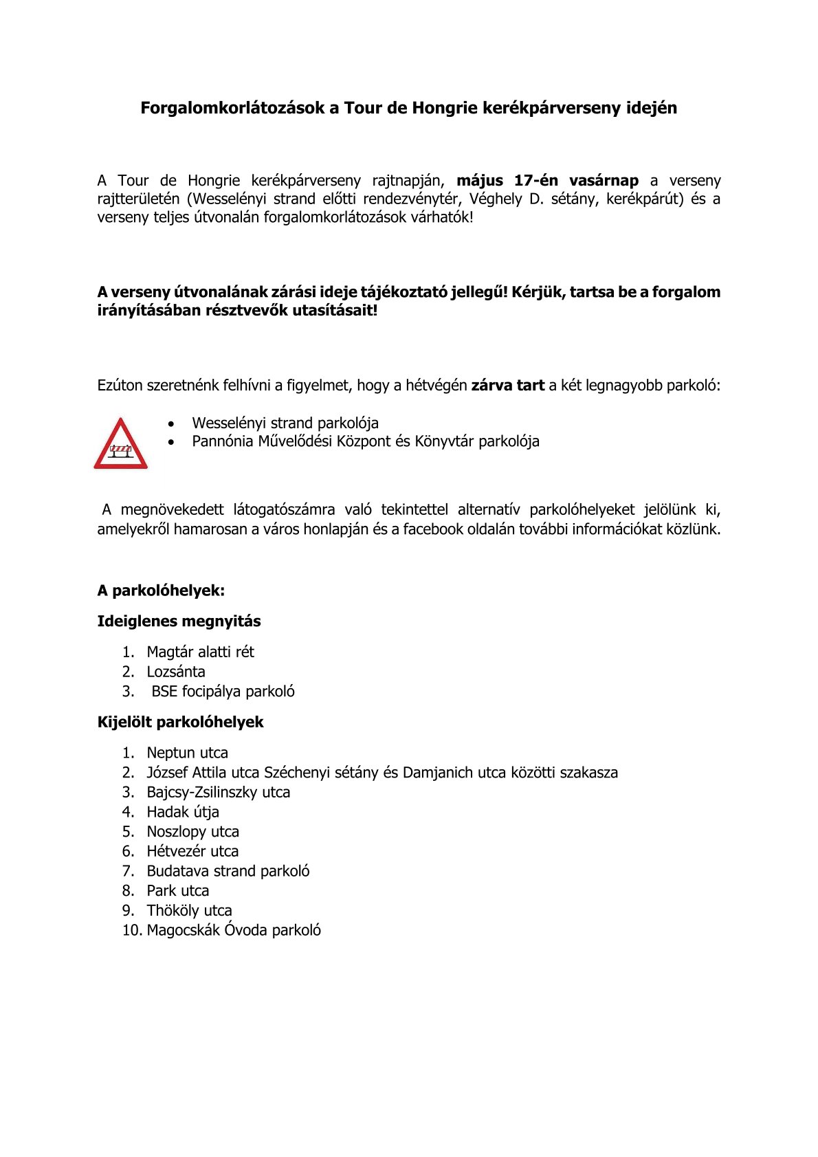 Forgalomkorlátozások a Tour de Hongrie kerékpárverseny idején