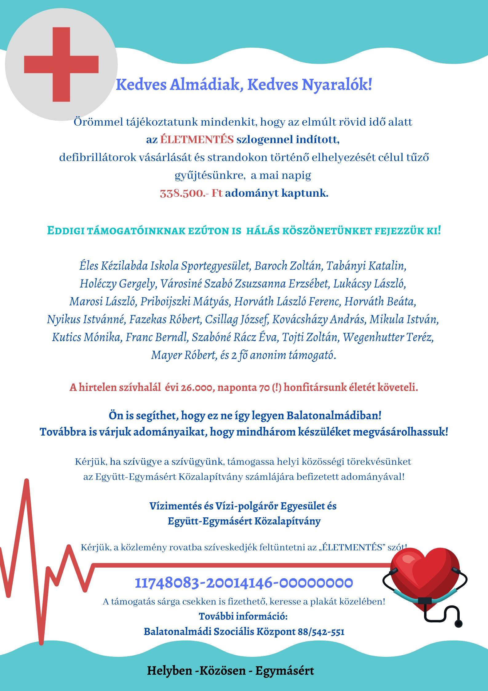 Együtt-Egymásért Közalapítvány és a Vízimentés és Vízi-polgárőr Egyesület tájékoztatója a beérkezett adományokról